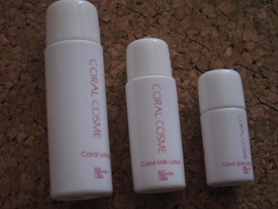 沖縄の珊瑚を使用した基礎化粧品セットです。 珊瑚にはコラーゲンが豊富で紫外線もカットする効果が あるそうです。 この商品を試してからは肌の乾燥があまり気にならなくなった気がします。 付け心地はとてもサラッとしていて 馴染みやすいです。