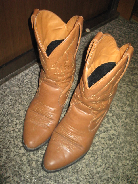 秋のファッションアイテム1 楽天で買ったウエスタンブーツです。 確か値段は2000円弱だったのですが しっかりしていて安っぽくないので お気に入りです。 夏っぽい服でもこのウエスタンブーツを合わせるだけで 少し秋らしくなります。 ショーパンやレギンス、スキニーなど 何にでも合わせやすいので 1足あると便利です。