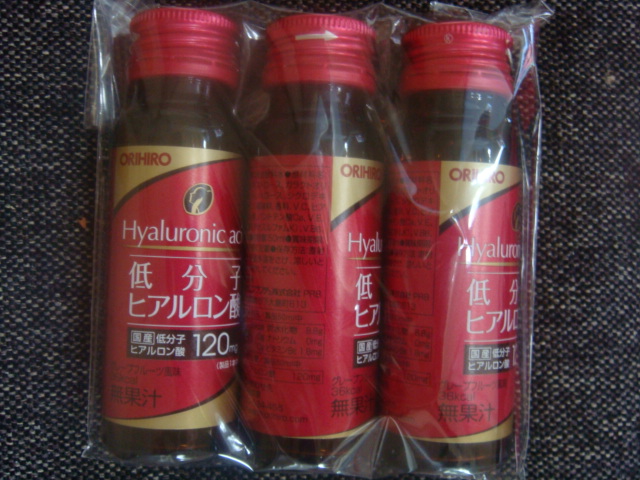 ヒアルロン酸は 皮膚や関節、目、臍帯などに存在するゼリー状の物質で、 1gで6リットルもの水分を保つほど「保水力」に優れています。 こちらの低分子ヒアルロン酸ドリンクは ヒアルロン酸をたっぷり120mg配合。 グレープフルーツ味で、ジュースみたいに美味しいです。 飲みやすいのでオススメです。 ブログでも紹介しています。 ↓ http://ameblo.jp/qitaimei/entry-10547259069.html