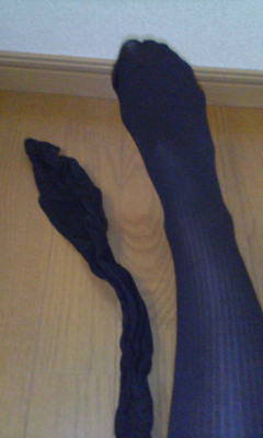 オルビスのタイツです 写真ではわかりにくいけどストライプのラインが入っててかわいいです これからの季節には大活躍! 確か60デニールだったよぅな・・・ 黒のタイツは脚が細く見えるから好きです