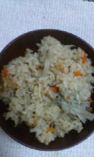 こんにゃく入りの炊き込みご飯です 湯通した白い糸こんにゃくをみじんぎりにしてだしや調味料、えのき、人参、ごぼうと一緒に炊くだけです ご飯のカロリーを落とせます♪