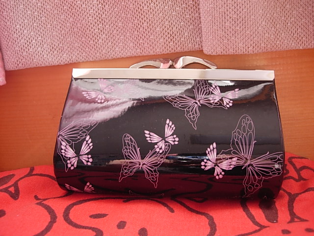 メタリック蝶柄のポーチ