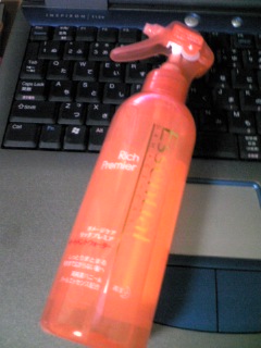 スタイリング前のモイストウォーターです。 この商品のよさは、さわやかに広がる柑橘系の香り!! スプレーした時に、香りのミストに包まれるような感じで 気分をリフレッシュできます。 香りはすぐに消えるので、それ以降につける ほかのヘアケア用品の香りともケンカしません。 ボトルデザインもかわいくて気に入っています♪ 値段もお手ごろです。 が。肝心の潤いとスタイリング効果については、 私のブローが下手なせいか、あまり実感できていません。。