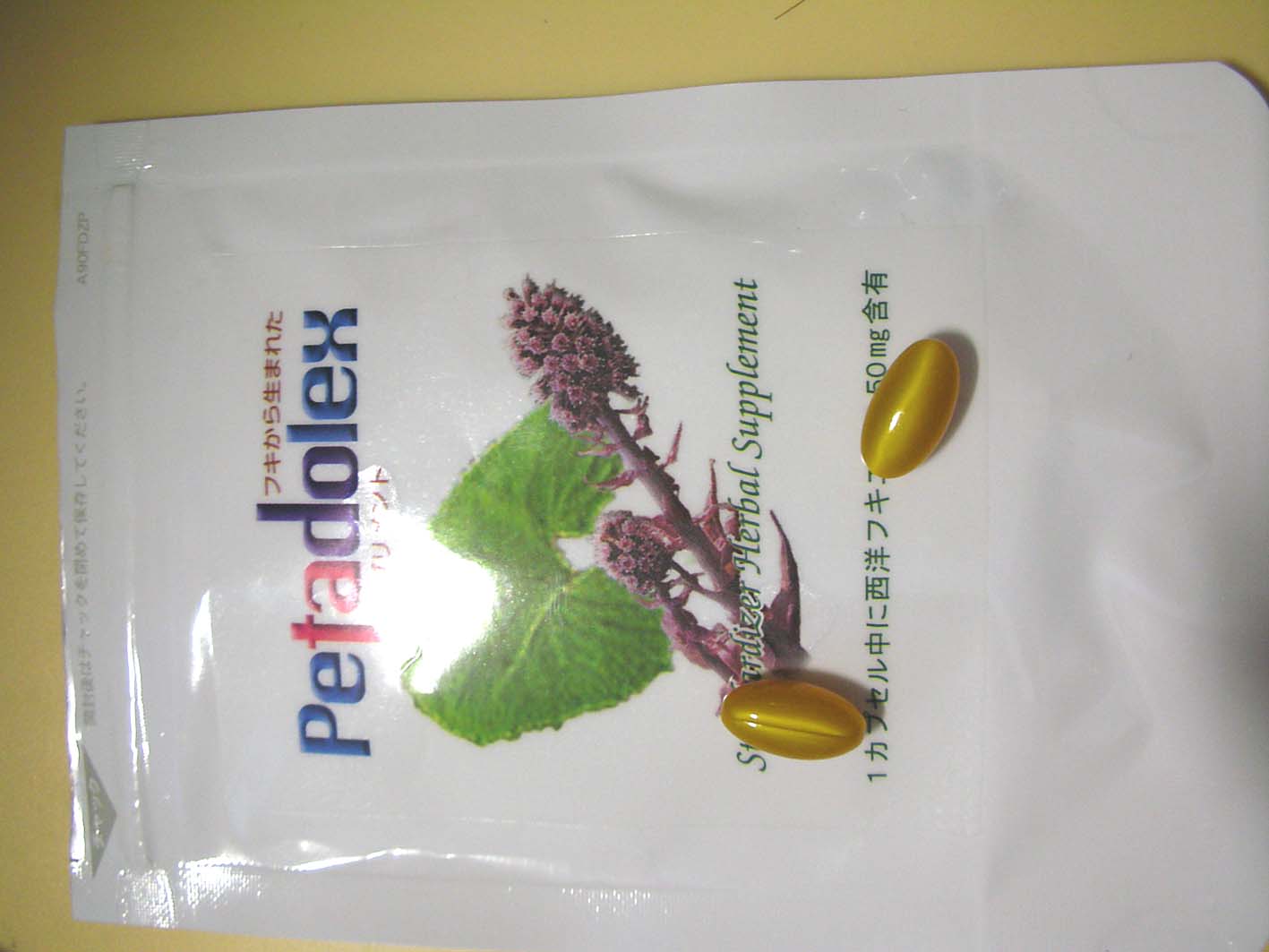 モニター応募で頂きました。 西洋フキの根から抽出された成分で、 花粉症・頭痛・体調不良・刺激などに効くそうです。 飲み始めなのでまだ効能はわかりませんが、 カプセル状で飲み易いです。