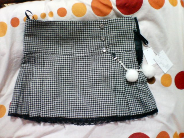 冬のバーゲンの戦利品です(笑 近所の安いお店で購入しました★★ なんと、1000円でした♪ 因みに定価は1890円(それでも安いとは思いますが)なので、 890円安い値で購入することが出来ました★ 試着せずに購入したのでウエストが…(笑 まぁ、いいダイエットのきっかけになったと思っています。