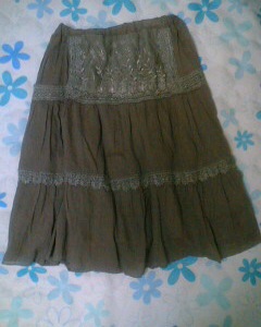 バーゲンの戦利品第2弾その2です。 薄茶のシフォンスカート。 ふわふわなので着心地がいい♪ 私は身長低いんで膝丈のスカートがなかなかみつからないんです。 でもこのスカートはぴったり膝丈で、はいた時に運命を感じました(笑) 50%オフの3千円だったし。 秋まで使う予定です。