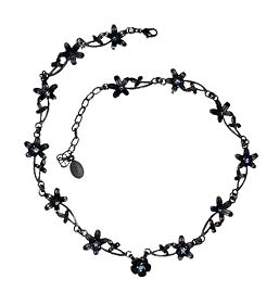 お気に入りファッションアイテムです。 プルーのガラス入りのお花のチョーカー。 首回りがとても綺麗に見えます。 あまりに気に入って、使いすぎて ちょっとはじっこがこすれてしまいました・・・