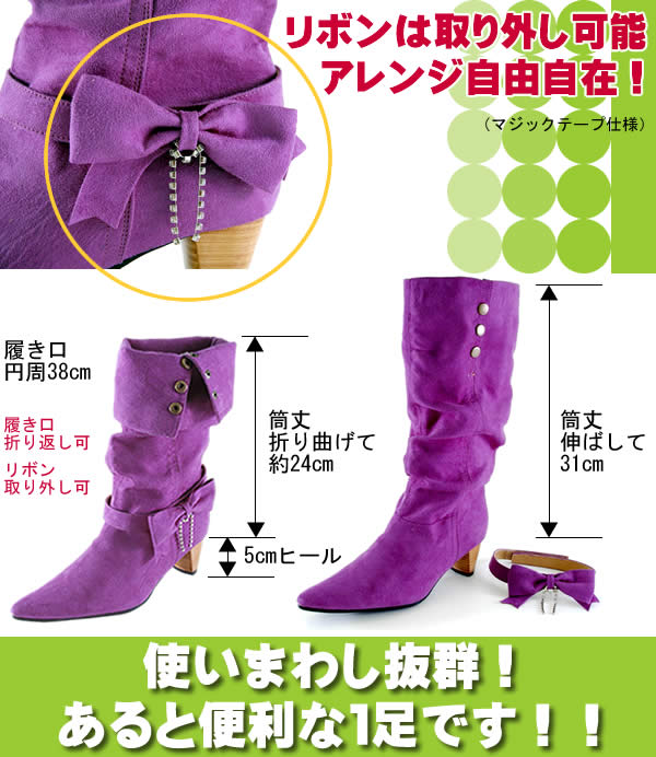 JerryGirlラインストーン付きリボンルーズブーツ