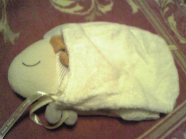 お休み時の癒しアイテム☆ まずラブリーな外観とほわほわの カバー(取外し可)にほっとしますが お腹の部分に香りのサシェをいれる 事で香りでもリラックスできると いうスグレモノ。 しかし枕という点では小っさいけれど。。。 イライラしている時や眠りが浅い時に 使って癒されてマス☆☆