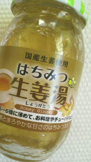 はちみつ 生姜湯です。 最近のおうち用のホットドリンクとして。 これを5〜6倍に薄める程度にお湯を注ぐだけなので作り方は簡単★ よく紅茶に加えたりしてます 冷水でもOK♪で、お酒やお料理にもいろいろ使えちゃいます! はちみつの甘さや(みじん切りの)しょうがが入っているので 体が温まるし風邪予防にもなりそうです