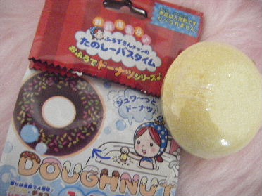 ダイエットのためにいろいろあきないように 毎日1時間ほど半身浴してます★ 最近流行のスイーツの入浴剤です 前から気にはなっていたのですが350円と お安いので購入。 いとご・ばにら・ちょこ・ばななと4種類の香りがあるのですが あたしはバニラの香りでした♪ バニラオイルより軽い甘いにおいでフレングラスのようでした 油であげるようにジュワーっと入浴剤がとけて なかからチョコドーナツがッ つくりもしっかりしていて、チェーンをとうして キーホルダーにしたり、スイーツデコにも使えます(^ω^)