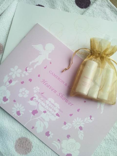 サンプルセット無料モニターでのお試しでしたが、本来ならこのセットで840円(送料無料)するそうです。 サンプルセットもオーガンジーの小袋に入ってかわいかったですが、パンフレットのかわいさったらなかった(*´д`*) 社名の「キャメロン&ガブリエル」に由来する天使のイラストがふんだんに使われていて見ているだけで癒される♪ 製品の名前もかわいくて、 角質柔軟導入美容水が「ヘブンシャワー」、 高保湿先進美容液が「天使の聖水」、 高機能美容オイルが「天使の聖油」ですって! 乳液やクリームはなく、さらっとし...