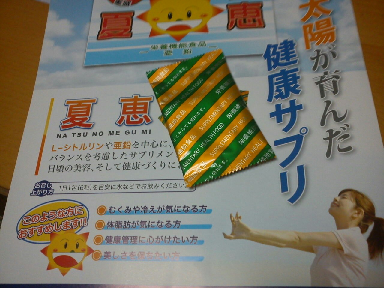 【夏恵】を お試しさせていただきました。 もともと冷え性で低血圧。 寒い冬は、とても辛い毎日です。 なので【夏恵】! お試しするのが楽しみでワクワクしながらの5日間でした。 1日6粒。癖のない香り・・飲みやすい大きさ・・。 5日間、飲み続けて・・。 朝起きが楽?雪の日には、頭痛がするのに大丈夫? 効いたかなって思いました。 冷え性、低血圧の他にも美肌効果、骨粗しょう症などなど 嬉しい効能ばかり! 【Lーシトルリン】 ぜひ続けたいと思ったサプリでした。 同じように、...
