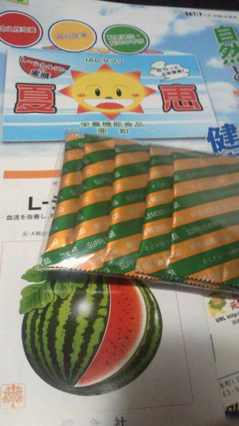 キレイナビのモニターに当選いたしました スイカやニガウリなどに多く含まれる成分(L-シトルリン) 今の時期はなかなか食材から摂取するのは困難かも?だからサプリメントで試してみて。 動脈硬化・脳卒中の予防、冷え性改善などの効果も期待されています。 亜鉛がはいっているのもよいですね 早速試して飲んでみました 飲みやすかったです 太陽のデザインがかわいいです