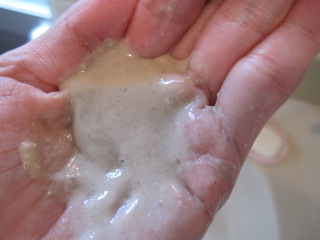 15年発酵させた米ぬかと、はちみつ・黒砂糖・生ローヤルゼリーなどが配合された「パックと洗顔が同時にできる」洗顔料です。見た目は黒くてやや硬め、においは黒砂糖に近い感じです。 水を加えて溶いて(酵素を活性化させる)、つけて少し置き、泡立ててから洗い流します。豊富な酵素やアミノ酸の力で肌を整え、くすみを取り去ることで美白効果も期待できるとか☆ 確かに肌がしっとり元気になるような気はしますが、使用感と泡切れがあまり良くなく感じられ残念です。