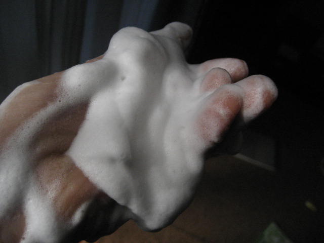 しっかりとした石鹸です。少々下が水に濡れた状態になってしまっても、ふやけてトロトロとなってしまうことがなく、頼もしい! 泡立ちもよく、密度が濃くてもったりとしたクリームのような泡が出来ます(私は洗顔ネットなしでもOKでした)。洗顔していても下にたれてくることはないしっかりとした泡です。 洗い上がりは突っ張らないのにつるんとした感じ。これもこの石鹸成分に含まれる様々な天然成分のおかげなのかな?と思いました。