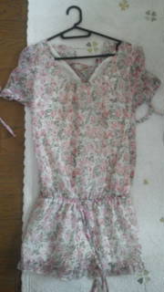 ローズ柄のワンピースタイプサロペット*・. 春にぴったりの薄ピンク色です(*^_^*) バックスタイルもフリフリレースが付いているので可愛い! 少し脱ぎ着シズライのが残念だけど、これ一枚でオシャレさん♪