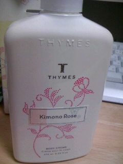 Kimono Rosetという香りのボディクリームです。 乳液より少し固めです。最初塗った感じはサラリとしてますが、なじませるとちゃんとしっとりに。 手もすぐサラサラになるのに潤うのは良かったです♪ 手に出しても垂れないし、容器を押さない限り中身が出ないので、使いやすいです。 優しいフローラルな香りです。ちょっと甘い香も感じますv フローラルすぎるのは苦手ですが、これくらいならちょうどいいです。