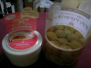 写真右です。 まず香りにひかれてしまいました・・。 グレープフルーツの香りはたいていハズレ無しで これもまたよい香りでしたvv シアバター・コラーゲン・ヒアルロン酸が入ったボディバター。 つぶつぶしたカプセルが入っています。 残ることはもちろんありませんけどね; 少し固めのクリームです。 すぐにサラっとなることはないけど、なじませたらすぐになじんでくれます♪ その時の香りがまた良い香りなのです♪ つけた最初はこってりな感じですが、すぐサラサラです。でもしっとりとしています。 すべすべする感じ...