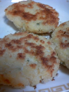 とにかくあまった具材を使いました。 豆腐が主なのでダイエットにいいかもと思います。 あまってたのが、冷凍いかと豆腐にえのき。 ハンバーグの具みたいにまとまれば 特に分量は気にしないでもOK。 つなぎに使ったものは、パリパリになってしまった餃子の皮。 何かに使えないかと思ってやってみました。 お湯と皮を混ぜ、ねっとしたら 具材と混ぜて、小麦粉、卵、パン粉をつけて、手のひらで伸ばして 少し多めの油をひいたフライパンで両面焼きます。 私はすぐ焼けるように適度に平たく伸ばしました。 表面がきつね色にな...