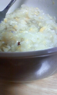 ダイエットしようと思ったら、雑炊が食べたくなります。 油を使わない分ヘルシーです。 作り方は適当です・・。 材料(味付けや材料はお好みでOK) 玉ねぎ 半分 えのき 半袋 卵 1個 中華だし 味の濃さはお好みで(だしの種類もお好みで) 水150ml ご飯 1食分 1、私はガスをあまり使いたくないので、具材(えのき、玉ねぎ)をレンジでチン。(500Wで2分程度) 2、水をフライパンOR鍋に入れ、具材も一緒に煮る 3、煮立って材料も柔らかくなったら、ご飯を入れて混ぜる 4、お好みのだしを...
