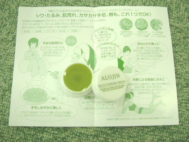 このクリームは只者じゃありません! 私は感想肌なので毎朝化粧水をしていました。 しかし、アロジン マルチパーパスクリームをつけることで この習慣が変わりました。 夜に気になるほうれいせん、目元にぬって寝ると 朝びっくり!!顔が、肌がもちもちしていて化粧水は 必要ありませんでした! こんなクリームって初めてです。この季節、乾燥がすごく気になっていましたがこのクリームで冬を越せそうです☆★ リピしたい一品ですね!