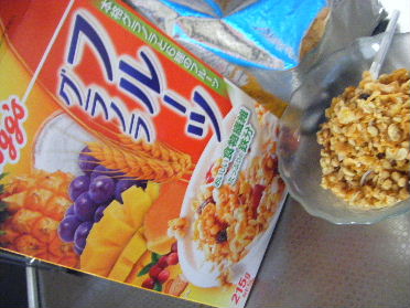 フルーツグラノーラは忙しい朝とダイエットにぴったり☆ 4種類のドライフルーツに 5酢類の穀物 3種類のナッツが入っていておいしい! これならおやつにも食べたいぐらいのお味です 笑 食物繊維もとれるのもうれしいところです(^ω^)