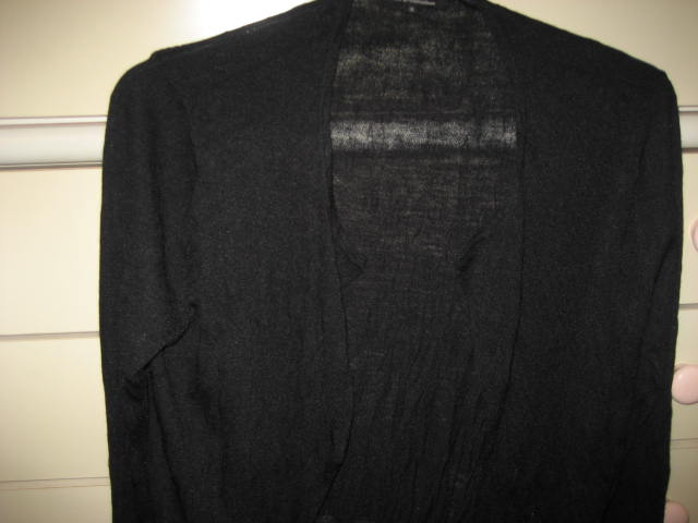お気に入りファッションです。 黒のカーディガンはオフィスでもプライベートでも出番が多くて重宝します。 これはとっても薄くて暖かさは期待できませんが、しわ加工の薄手も素材がさりげなくおしゃれな感じで気に入っています。 コンパクトになるのでぬいでバックに入れても邪魔になりません。