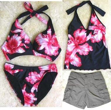 夏の必須ファッションアイテムと言えば・・・ やっぱり水着ですよねっ! ネット・オークションで購入しましたっ♪ 黒地にプルメリア(?)柄のデザインは→ リゾート系の雰囲気&少々大人っぽいイメージっ! ☆ホルダーネックタイプのビキニ☆ (ちゃんとパッド入りっ!) ☆ショーツ☆ ☆おそろいの柄のキャミソール☆ (内側には取り外しの出来るブラ付きっ!) ☆ショートパンツ☆ のづ瀬札奪箸任垢叩А キャミソールとショートパンツは→ 普段でも着れそぅ〜♪ 大満足〜! 大満足〜! まさにっ!?・・・ づ世箸癶私のツボっ(゜−...