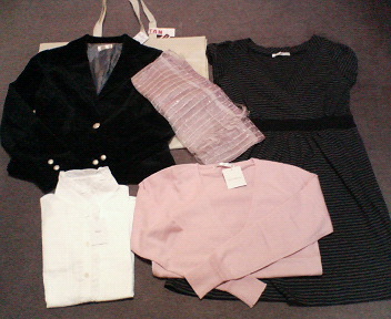この冬のバーゲン戦利品です。 相模大野の伊勢丹の初売りで買いました。 もともと買う予定ではなかったのですが、 店頭で「開店時に整理券で完売したドゥアルシーヴの 福袋ですが、キャンセルが少し出ました!!」という声。 整理券で完売するほど人気のある福袋、 5万円相当の品が5千円ということで、 これは買うしかないと即効で購入。 ☆べロアのブラックジャケット ☆ホワイトハイネックブラウス(長袖) ☆ボーダーのチュニックワンピ(パフスリーブ) ☆ビンクのVネックセーター ☆ピンクのシルクマフラー 買っ...