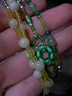 お安い手作りアクセサリーショップからの購入。 特にこういう色は春によく合うと思います♪ 値段もとっても安かったし送料もとっても安かった☆ 現在はサイトが無いのか移動したのか・・。 探せなくて残念です; これは緑はビーズですが、黄色は天然石も入ってます。 イエロージェイドという名前だったかと・・。 私は春は緑のアクセサリーが多いし こちらのはとってもお安いので満足してました^^ 中にはお花のビーズがあったりして、 安いけど、他にもですが、見た目はお値段以上に見えるので 気にしないで色々集めて使い...