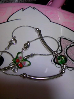*春のファッションアイテム* 友達からの誕生日プレゼントでもらいましたv 私が緑が好きというのを覚えててくれて よく着るチャイナブラウスに合いそうだからとくれました♪ 緑なので春っぽい色でどの服でも邪魔しません^^ シンプルだけどデザインが可愛いなぁと思います☆ 本物ではないけど、翡翠っぽい色で好きです♪