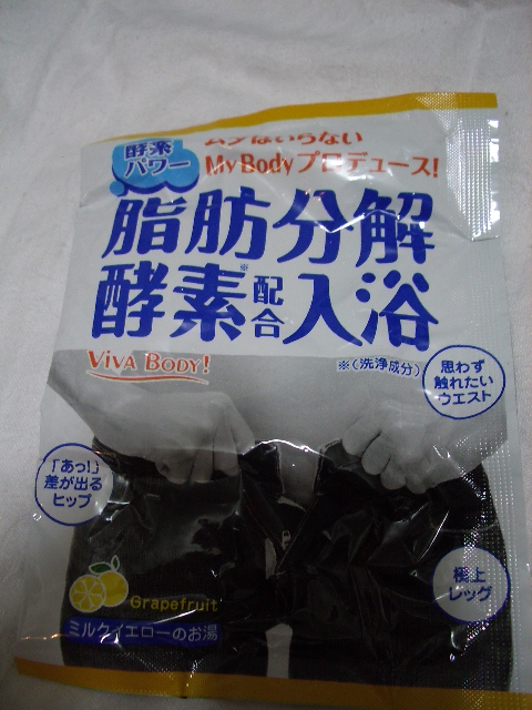 ダイエット効果を謳ってはいますけど とりあえず気休めでもうれしい脂肪分解酵素入り☆ しかもグレープフルーツの香りで 癒し効果もあるので結構お気に入りです♪