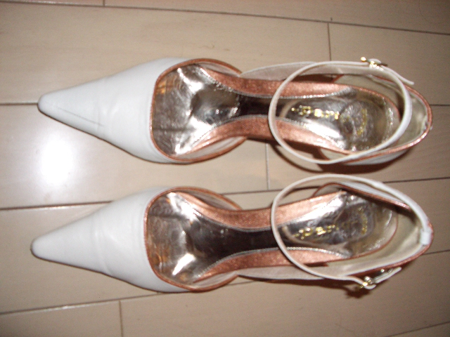 バーゲンでゲットした白いパンプスです。 普段あまり高いヒールは履かないけれど 結婚式などフォーマルな場に履いていける靴が 欲しかったので即購入! 早速使いました!ちょとあしが痛くなるけれど でもデザイン的に落ち着いていて気に行っています★