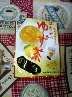 ◎健康法◎ カンロのはちみつゆず茶のど飴です。 風邪を引いて、のどが痛い時に買いました。 たまたまこれを買ったんですが、 これ美味しいですよ!半端なくうめぇ。 ゆずピール(果皮)とゆずペーストが入っています。 舐めていると中からゆずピールとゆずペーストがぁぁぁ!! すこぶる美味しいです。 おすすめののど飴です。是非ご賞味あれ!