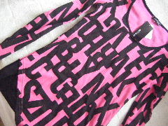 アルファベットがかわいいロンTシャツです。 夏物を調達するため近所のしまむを捜索しに行ったのですが 黒×ピンクの配色やプリントに一目ぼれして購入☆ すそがレイヤード風になっていてショーパン+グラディエイター を合わして派手かわコーデにすると いいかなぁっと思います(^ω^)!