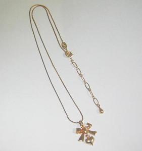 「リボン&ハート」のデザインがとってもフェミニンな〜♫♬〜 ゴールドのネックレスですっ♪ シンプルな「白いシャツ・カットソー・ワンピース等〜」に合いますね:) 高級感アリアリなので... ちょっぴりフォーマルなスーツ等のファッションにもGoodですっ(゜-^v)! コレは・・・ 春のファッションのみに限りませんが... ここぞと言う時に↑重宝してますっ(^-^*)-☆