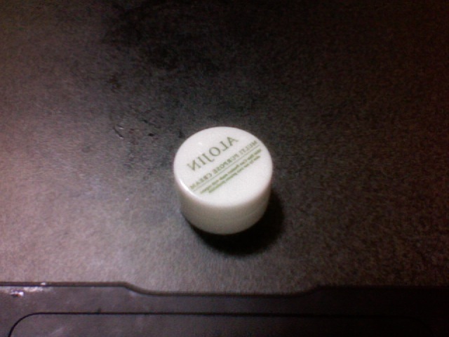 おとつい、サンプルが届きました! 画像はパソコン付属カメラで撮影したのですが、なぜか鏡状態です(笑 フタを開けてびっくり、なんだろうこの緑色の羊羹は‥‥ ユビで優しく撫でると、サラッとクリーム状になりました。 が、乾燥やシミが気になる目の下に塗ると、コッテリです。 首にもつけてそのまま就寝したんですが‥‥ 今朝の肌状態はバッチリ!! 化粧ノリもかなり良かったです。 おすすめー。
