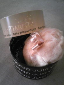 想像していたよりビックサイズでした〜。 ふわふわのパフの中に、ダイヤモンド0.2カラット・ヒアルロン酸などのうるおい成分や美容成分を配合。お肌をケアしながら、キラキラと輝くジューシー美肌に変身! と女子なら誰でもときめかずにはいられないボディパウダーです。 ダ、ダイヤモンド? 粉にしないでそのまま私に下さい。 いや、これは心のつぶやき。 パウダーinタイプなのではたくとき粉がとびちるとかなくていいですね。 つけてみたら、キラキラゴージャス気分。 イメージとしては結婚式にお呼ばれしたときとか...