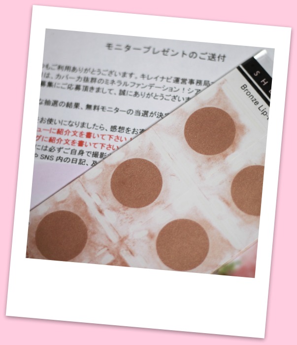 今回はファンデーションのサンプルから、 パーリー リップ アンド アイのサンプルに変更とのことで、 少々残念だったことと、色がブロンズのみだったので、 星を一つ減らして6個にしました。 アイシャドー、チーク、リップグロスに使えるとのことでしたが、 わたしはシャドーとして使ってみました。 普段、ピンク系のものを使っているのにブロンズなのか・・・ そうドキドキしながらまぶたにのせましたが、 思った以上に発色がよく、立体感よく仕上がり驚きました。 お化粧直しをせずに1日いたのですが、よれたりもしません...