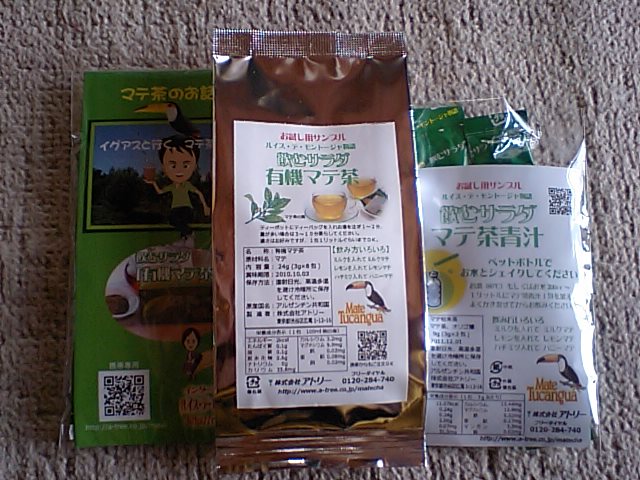 有機マテ茶のサンプルをいただきました^^ お茶は毎日飲むのですが、マテ茶は初体験。 ホットにして飲んでみました。 思っていたよりもクセがなく、飲みやすかったです♪ もっと、苦いのかな?という先入観をもっていたので(笑) ティーバックタイプなのも手軽でスゴクいいですね!