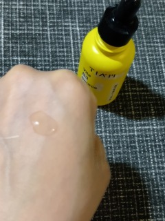 ガラスのプッシュタイプのボトル。 中身のキラキラした色が見えるのが素敵。 中身は、とろっとややゆるめなテクスチャー。 すっとスムーズになじみ、べたつかない。 しっとりとするような使い心地でハリツヤ(個人の体験による) シトラス系やハーブによるさわやかな香りがふわっとただよって素敵。 べたつかないので朝晩使いやすいので気に入ってます。