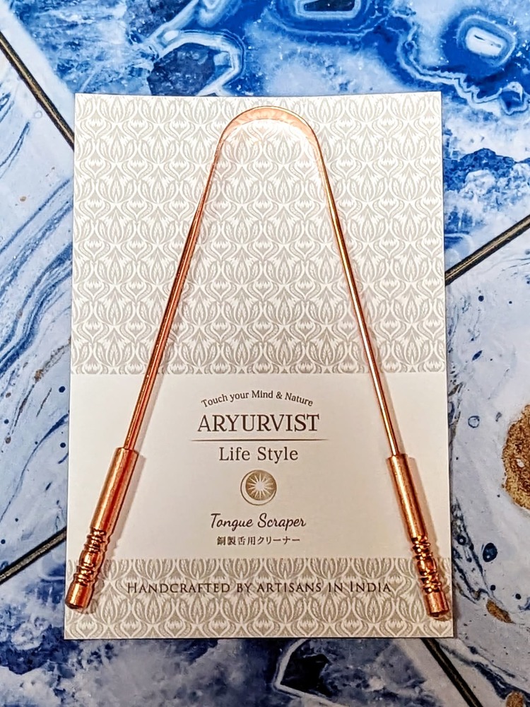 アーユルヴィストさんの新作はお洒落な舌磨き🪥 使い方はトングの丸い部分を舌に3〜5回滑らせるだけと簡単でした♪ 見た目も綺麗で、簡単にさっぱりするので毎朝の必需品です🪥 ✔アーユルヴェーダで推奨される銅100%使用 身体に良く、殺菌作用もあることから水差しや食器、さらにタングスクレーパー (舌磨き)にも使用されてきました。 ✔インドの職人がひとつひとつ丁寧に仕上げ、口あたりが良いのが特徴です。 ✔寝てる間に溜まった雑菌や舌苔を朝5秒の習慣で除去 @aryurvist_offic...