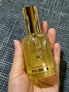 ガラスのプッシュタイプのボトル。 中身のキラキラした色が見えるのが素敵。 中身は、とろっとややゆるめなテクスチャー。 すっとスムーズになじみ、べたつかない。 しっとりとするような使い心地でハリツヤ(個人の体験による) シトラス系やハーブによるさわやかな香りがふわっとただよって素敵。 べたつかないので朝晩使いやすいので気に入ってます。