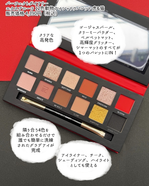 大人気「エクスプローラ 12色動物アイシャドウパレット」から2025年6月に発売されたのは虎&猫!