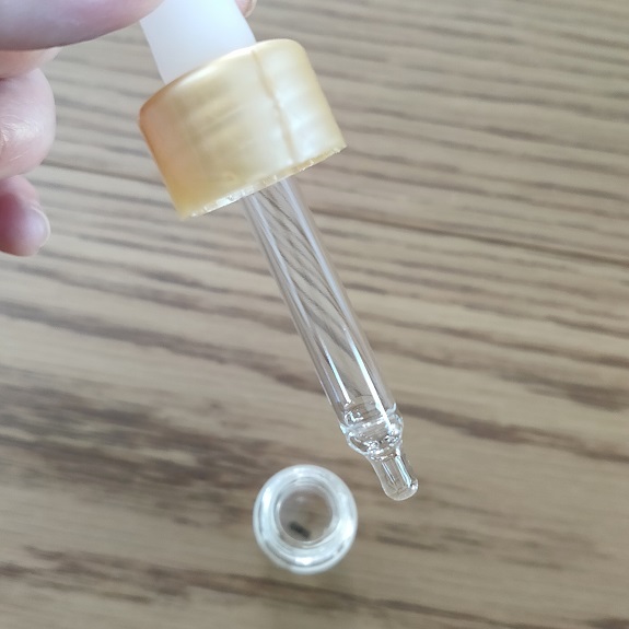 消費者の手元に届いて初めて、開封してスポイトを瓶に取り付ける形。