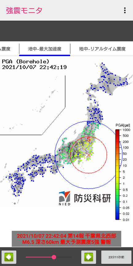 地震計測アプリが機能したようですが、震源地が赤くなっていなかったりと何だか変です。