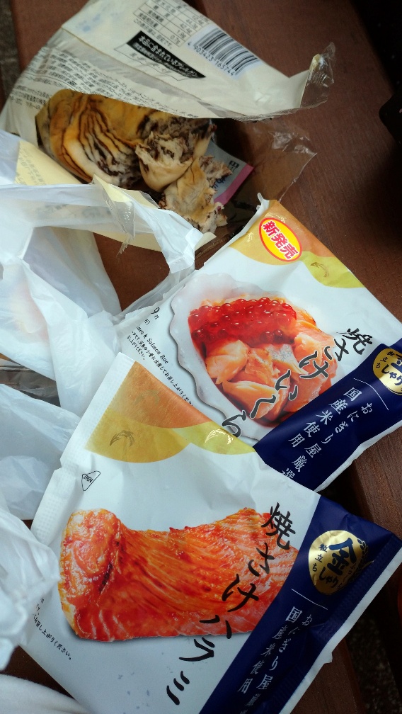 近所の公園まで戻ったら取り敢えずホッとひと息です。久々のお外でランチでした。