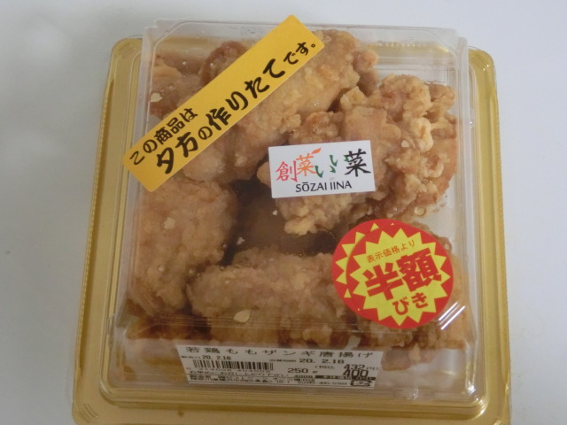 今日は家を出るときには、雨は止んでいたので、濡れないで行けてよかったです。出かけた帰りのデパ地下で、惣菜やお弁当が半額まつりになっている店が多く、唐揚げも半額でラッキーでした。おいしかったです(^o^)この容器見るだけでテンション上がりました(^o^)