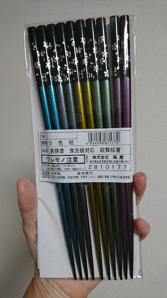 食洗機対応のお箸です。届いたら派手すぎて驚きました(笑)